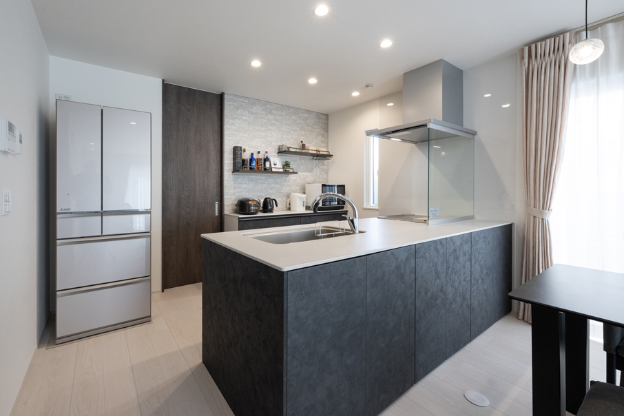 「収納が多く動線が良い家を建てたいと思っていたところに、友人の紹介でクレアカーサを知りました。中でも規格型提案住宅「Mine+DESIGN」の間取りを見つけたときに“これだ!”と。シューズクローゼット、ファミリークローゼット、パントリーと、必要な収納がすべて揃っていてとても助かっています」とオーナー。
