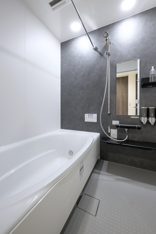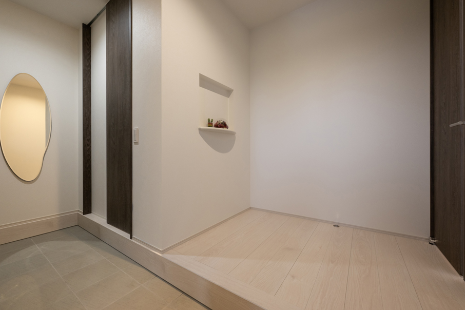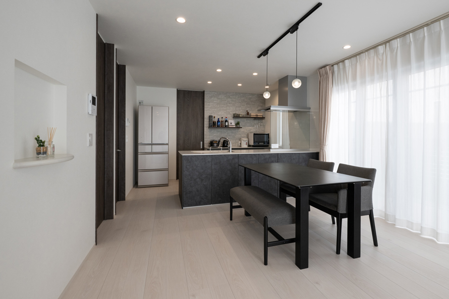 室内はあたたかくナチュラルな色合いをベースにグレーの濃淡を効かせて。やさしい光に包まれた空間は、住む人に安らぎをもたらします。