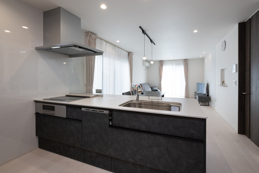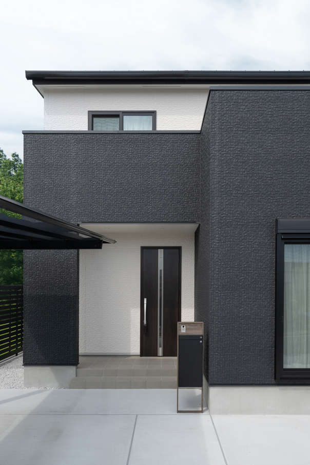 外壁は重厚感のあるブラックと清潔感のあるホワイトを組み合わせたツートンカラー。無駄のないスクエアなフォルムが、都会的でスタイリッシュな印象を与えます。