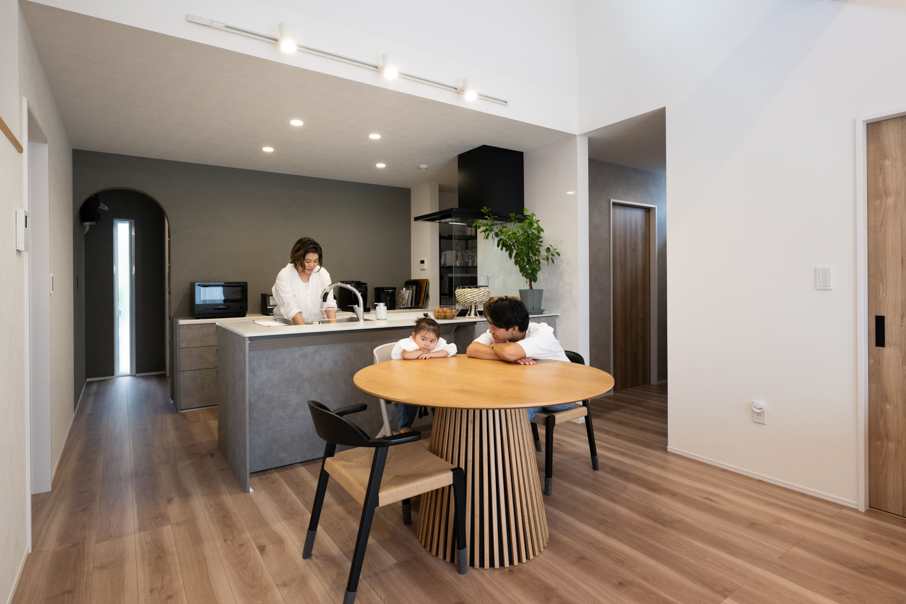 「将来子どもがリビングを通らないと外出できないような間取りだったり、夜リビングから寝室に移動する際の消灯動線に配慮するなど、夫婦で知恵を出し合いました。家は3回建てないと満足できないと言われるなか、1回目でどこまで理想に近づけるか、に挑戦した私たちのマイホームづくりです」 お子様の成長を見守り慈しみながら、丁寧な暮らしをされています。