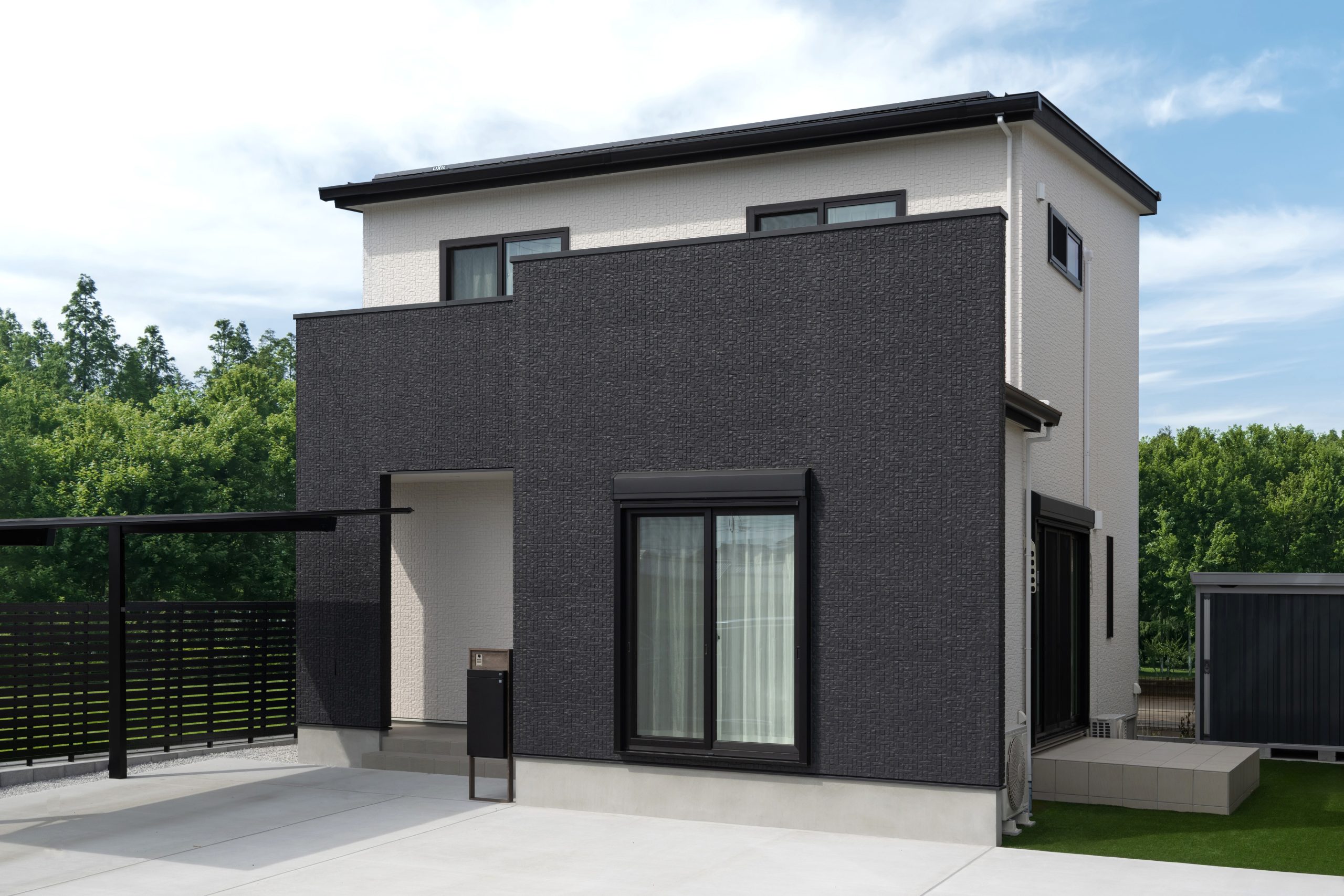 外壁は重厚感のあるブラックと清潔感のあるホワイトを組み合わせたツートンカラー。無駄のないスクエアなフォルムが、都会的でスタイリッシュな印象を与えます。