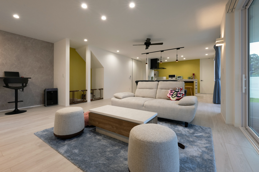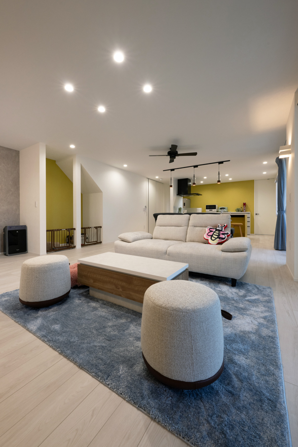 室内カラーは白とベージュをベースにマスタードイエローを効かせて。その深いトーンは温かみと落ち着きを感じさせてくれます。