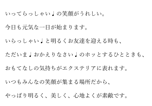 家に訪れたお客様が最初に目にし、家の印象を決めるといってもよいこのアプローチを質の高いものにしてみましょう。