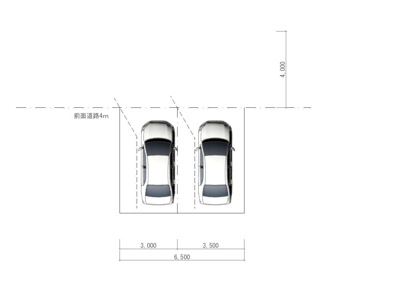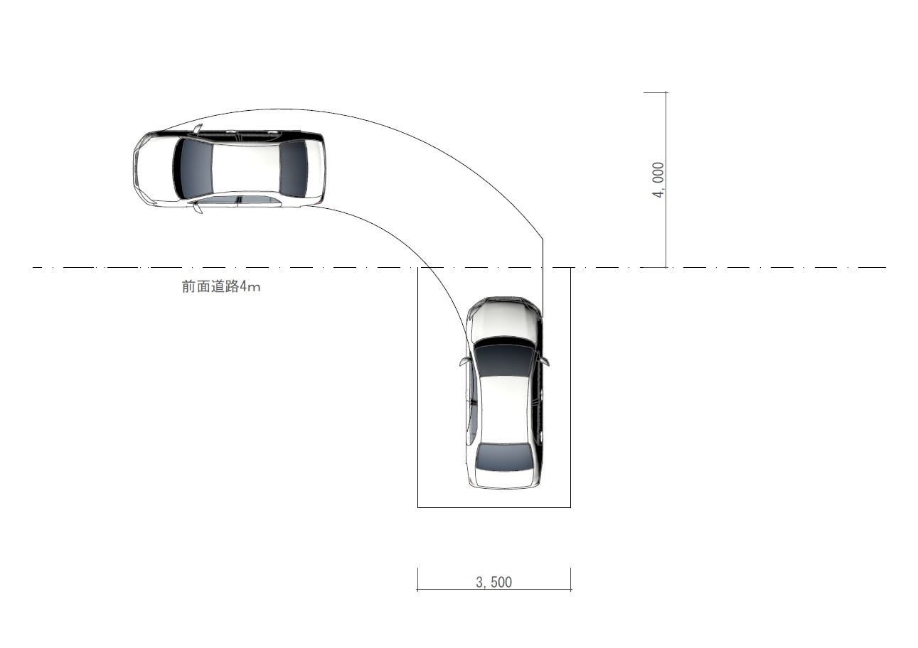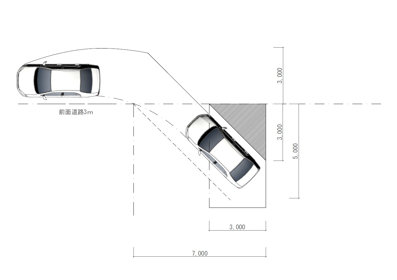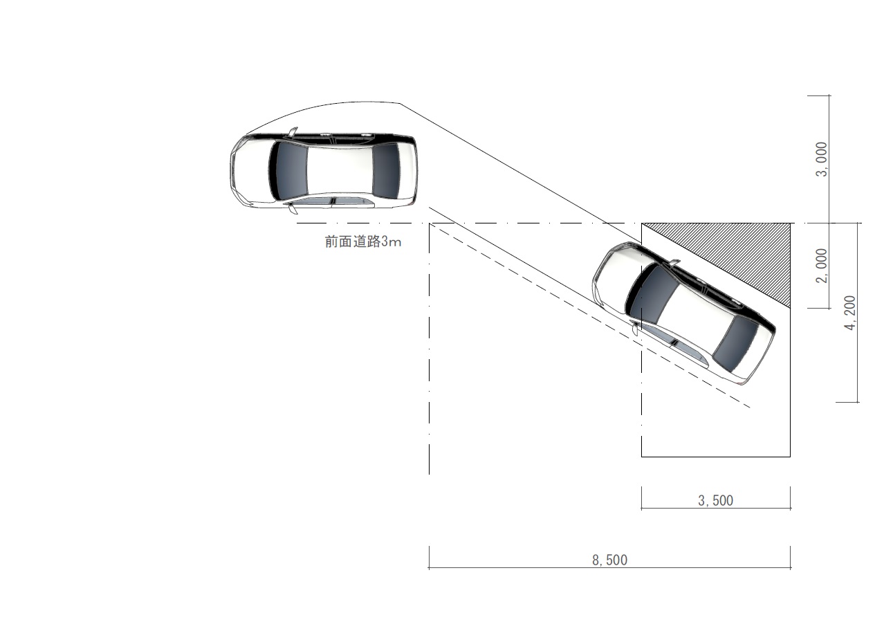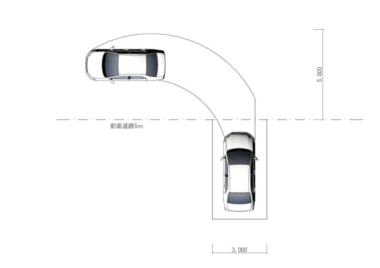 駐車に必要なスペースは前面道路幅員や駐車のパターンによっても変わってきます。