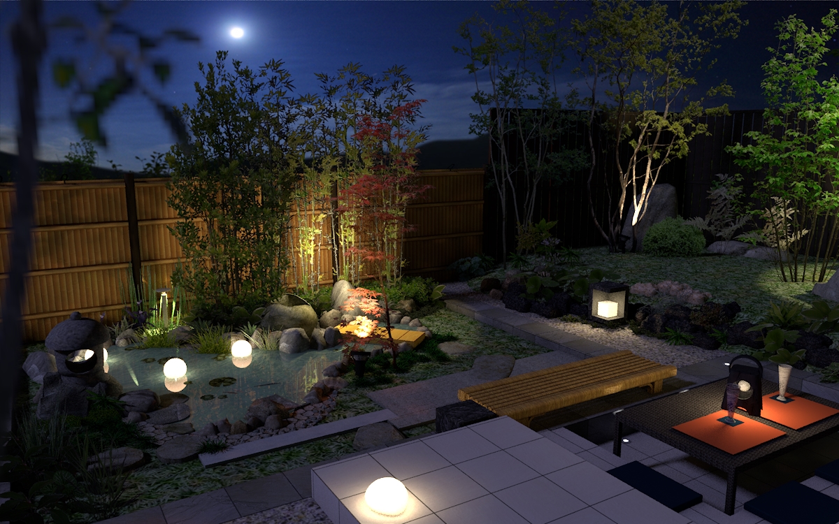 RIKCAD パースコンテスト優秀作品 ライティング部門「和モダンな庭を楽しむ夜」