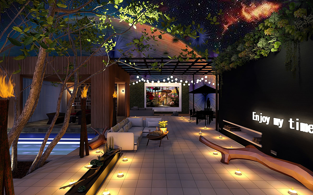リックパースコンテスト2020 ライティング賞 優秀賞「Garden with pool at night」